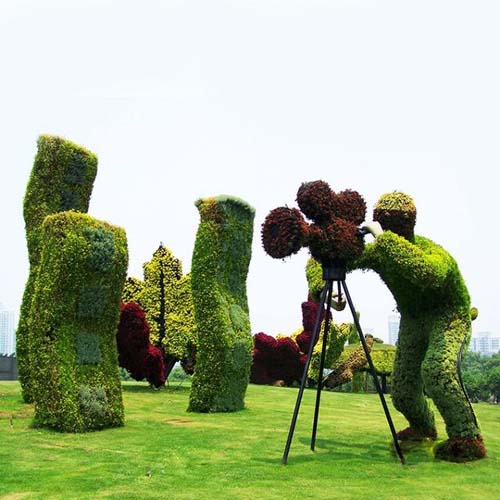 根據(jù)綠雕的造型來分類,可以分為三類。包括立體式、平面式以及土丘式。其中立體式綠雕以金屬材料為內(nèi)部構(gòu)架而制成的綠雕。從整體上來看,立體綠雕更有亮點,也更受老百姓的喜愛。平面式綠雕也是非常常見的,這需要在寬廣的地盤才能制作出來。老百姓觀看時,視野比較寬闊。***一種土丘式綠雕,這名字來源于它的整體形狀。因為土丘式綠雕中間相對較突出,周邊較低。
