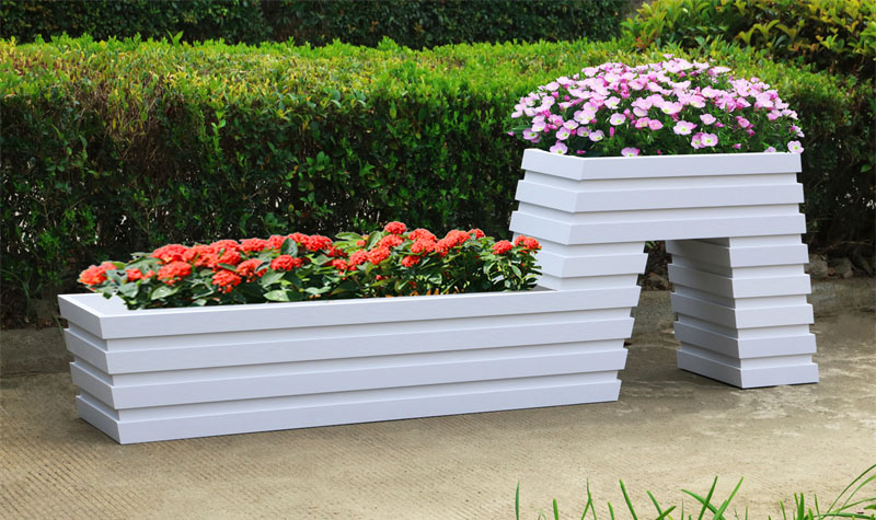 PVC花盒易于切割、彎曲、雕刻,可以制作出各種豐富的造型,價(jià)格實(shí)惠。 所以鋁合金花箱的缺點(diǎn)也是它的優(yōu)點(diǎn)。由于材質(zhì)堅(jiān)固,不易彎曲。如果容易彎曲,則材料沒(méi)有那么堅(jiān)固。