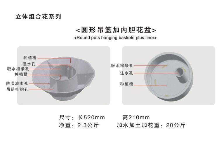 圓形吊籃花盆、燈桿吊盆選擇森格物園林景觀,我們有多年生產(chǎn)經(jīng)驗,生產(chǎn)的花盆質(zhì)量好,價格低,優(yōu)質(zhì)燈桿塑料PP花盆,立體景觀花架、鐵藝花架造型、鐵藝花柱、花樹、花箱選擇我們!
