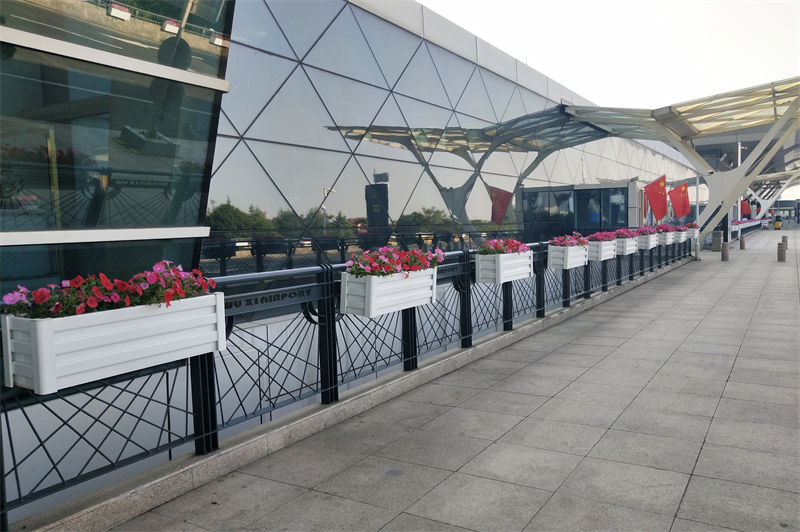 一、吊花箱安裝方便,安裝橋梁護(hù)欄即可。升降花箱尺寸小,花箱與花箱間距合理,能很好的展現(xiàn)橋梁景觀。花盒的顏色多為白色。