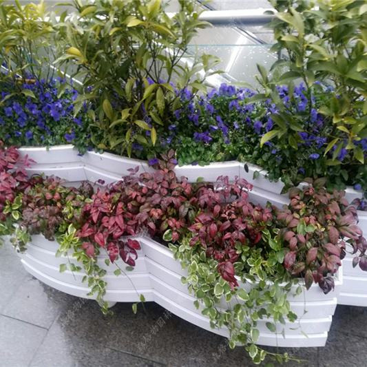 花箱材質(zhì)pvc,不吸色、易清洗、不腐爛,它單位立方的承載力是木材的55倍。pvc花箱外部具有防蟲蟻、防日曬的特點,花箱內(nèi)部側面有板條加固,牢固升級,不變形、不開裂。柔韌性佳,加工性能強,能根據(jù)需要定制圖案。