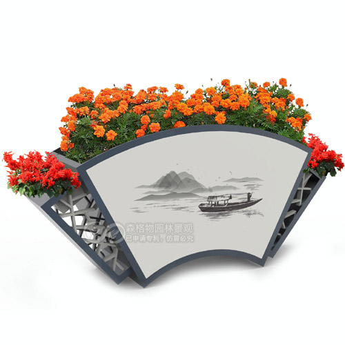 扇形宣傳畫pvc微發(fā)泡花箱,畫扇玻璃鋼花箱,畫扇山水畫鋁合金花箱