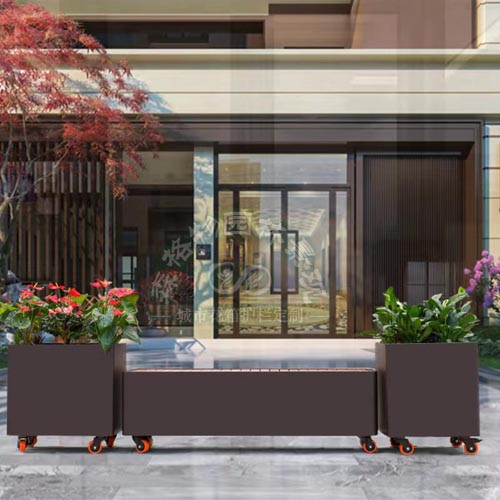 簡介:這款花箱坐凳兩側(cè)是2個小花箱,中間塑木不銹鋼坐凳?;ㄏ涞撞堪惭b萬向輪,不僅具有可移動性,保留了原有的美觀和實用功能。